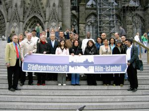Die Kölner Bürgermeisterin Elfi Scho-Antwerpes, der Vertreter des Kölner Generalkonsulats Aydin Bulgu sowie die Vorstandsmitglieder des Städtepartnerschaftsvereins Walter Kluth und Monika Bongartz verabschiedeten die Läufer auf der neuen Domtreppe.