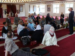 Er berichtete uns über die Entwicklung der Planung von Moschee und Begegnungsstätte, über die Beteiligung der ortsansässigen Kirchen, Vereine und Nachbarn bis hin zu ihrer Eröffnung im Jahre 2008.