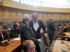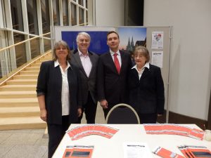 Zu einer parlamentarischen Begegnung aller Städte/Städtepartnerschaftsvereine in NRW, die mit einer Stadt in der Türkei eine Partnerstadt pflegen, hatte die Landtagspräsidentin, Frau Carina Gödecke, eingeladen. An unserem Infostand konnten wir auch Frau Cigden Münevver Ökten von der türkischen Nationalversammlung, Herrn Generalkonsul Hüseyin Emre Engin, die SPD-Landtagsabgeordnete Gabriele Hammelrath sowie Kai Pfundheller begrüßen, der eine wissenschaftliche Arbeit zu den Städtepartnerschaften in Deutschland geschrieben hat.