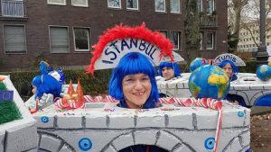 Unter dem Motto „Uns Brücke sin fädich“ zogen 45 Mitglieder von 8 Kölner Städtepartnerschaftsvereinen (die alle Kölner Partnerstädte repräsentierten) bei strahlendem Sonnenschein bei den Schull- un Veedelszüch 2017 durch Köln.