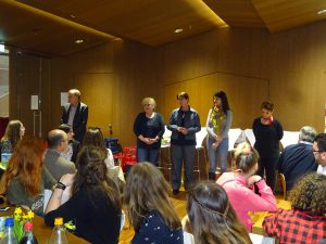 Das Erzbischöfliche Berufskolleg in Köln hatte ebenso wie die Gesamtschule Holweide in dieser Woche Schülerinnen und Schüler aus Istanbul mit ihren Lehrerinnen Yasemin Kural und Belkis Huz zum 11. Austausch seit 2012 nach Köln eingeladen. Sie wurden von Bürgermeister Hans-Werner Bartsch im Rathaus empfangen, veranstalteten eine Vielzahl von Besichtigungen und waren in den Partnerfamilien untergebracht. Bei einem „Abend der Begegnung“ in der Kölner Schule hatten die Schülerinnen und Schüler ein Abendessen vorbereitet, bei dem auch die Eltern sowie Vertreter*innen des Städtepartnerschaftsvereins Köln-Istanbul eingeladen waren. Bei dieser Gelegenheit bedankten sich die Teilnehmer*innen sowie deren Eltern den Kölner Lehrerinnen Michaela Thissen und Iris Hoof für die tolle Organisation des Austausches.