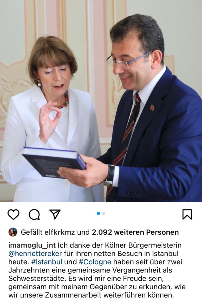 Frau Oberbürgermeisterin Henriette Reker ist in unserer Partnerstadt Istanbul mit ihrem Amtskollegen Ekrem ımamoğlu zusammen getroffen um über die zukünftige Zusammenarbeit zu sprechen.